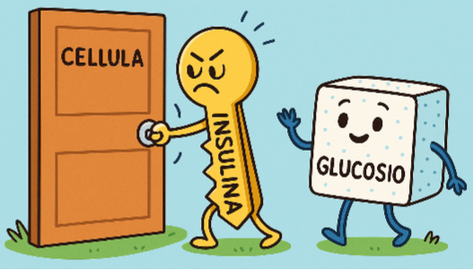 Le cellule, bombardate dall’insulina, diventano meno sensibili: non aprono più bene le porte al glucosio. Il pancreas cerca di compensare producendo ancora più insulina, creando un circolo vizioso.