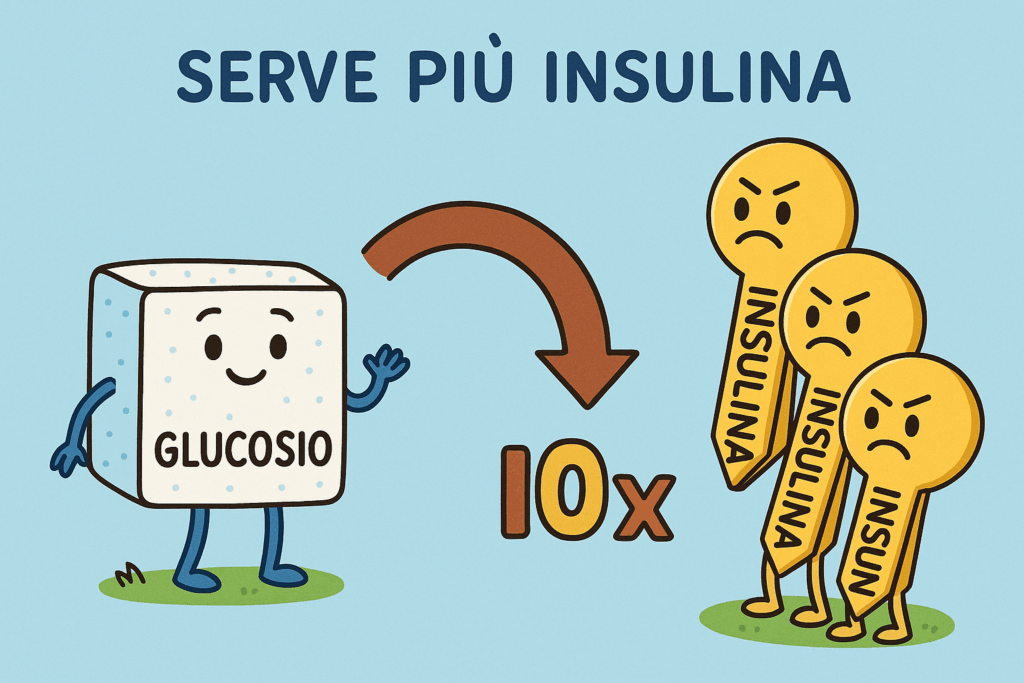 Risultato: il corpo entra spesso in condizione di iperglicemia (troppo zucchero nel sangue).