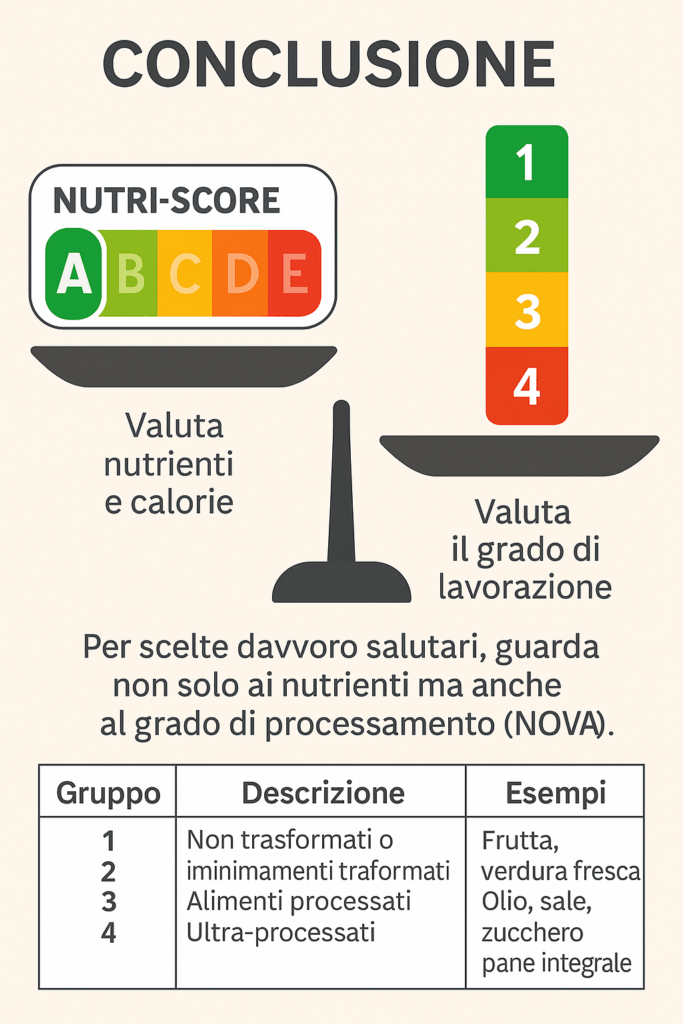 Il Nutri-Score può avere una funzione orientativa se usato per confrontare prodotti industriali simili, ma non è uno strumento affidabile per valutare la salubrità reale di un alimento o il suo ruolo all’interno di una dieta.
