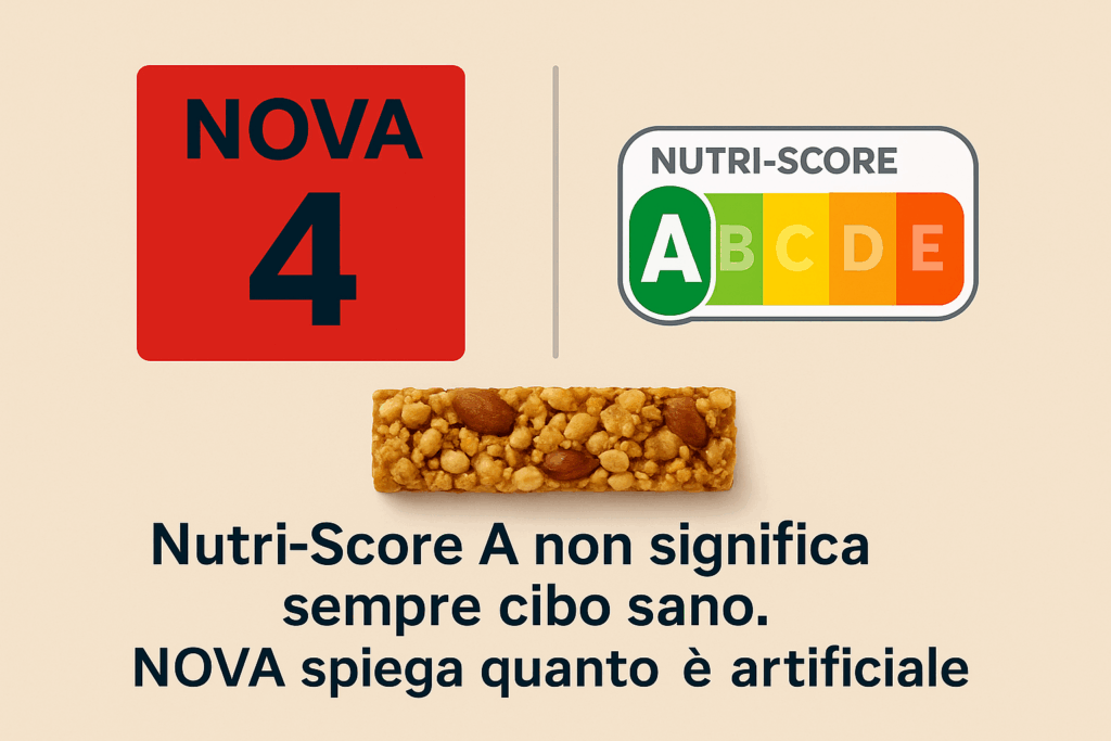 Molti prodotti con Nutri-Score A o B possono comunque essere NOVA 4 (ultra-processati). La differenza è fondamentale: