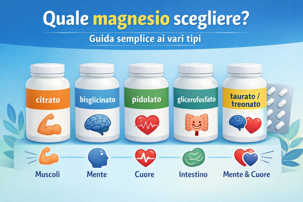 In farmacia o online sembra di entrare nel “mondo magico del magnesio”: citrato, bisglicinato, pidolato, treonato, taurato… Sembra tutto uguale, ma non lo è.
